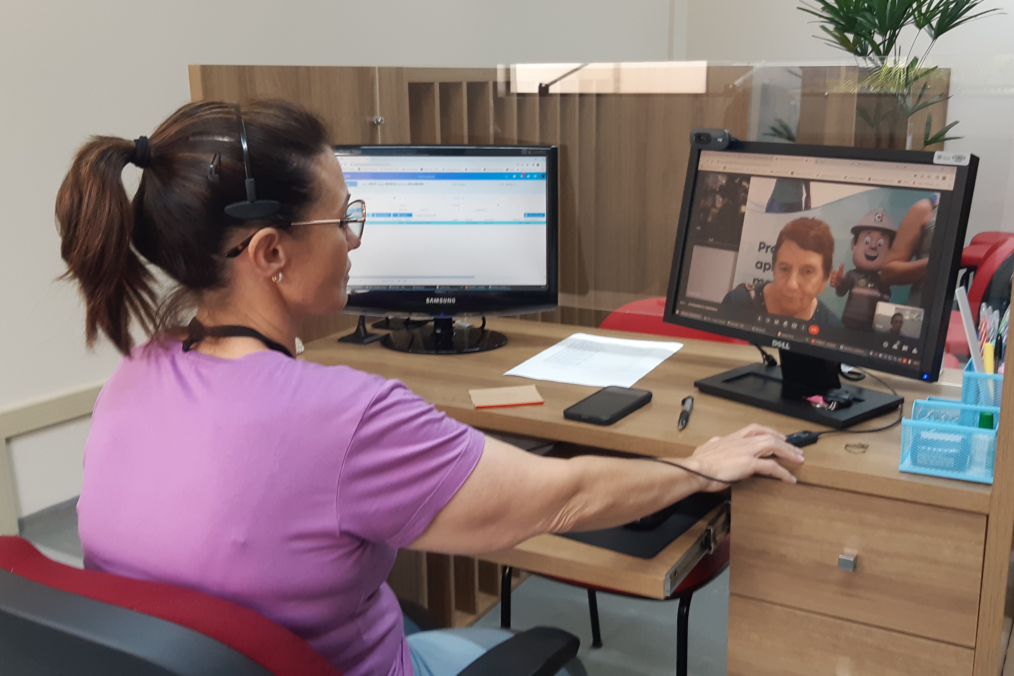 A cooperada Iracema Leite da Rosa foi a primeira a aproveitar os benefícios do atendimento remoto. Nesta quarta-feira, 11 de dezembro, sentada em frente à webcam instalada no posto da Vendinha, ela foi atendida pela colaboradora do setor de Relacionamento com o Cooperado, Sabrina Silva, de Taquari.