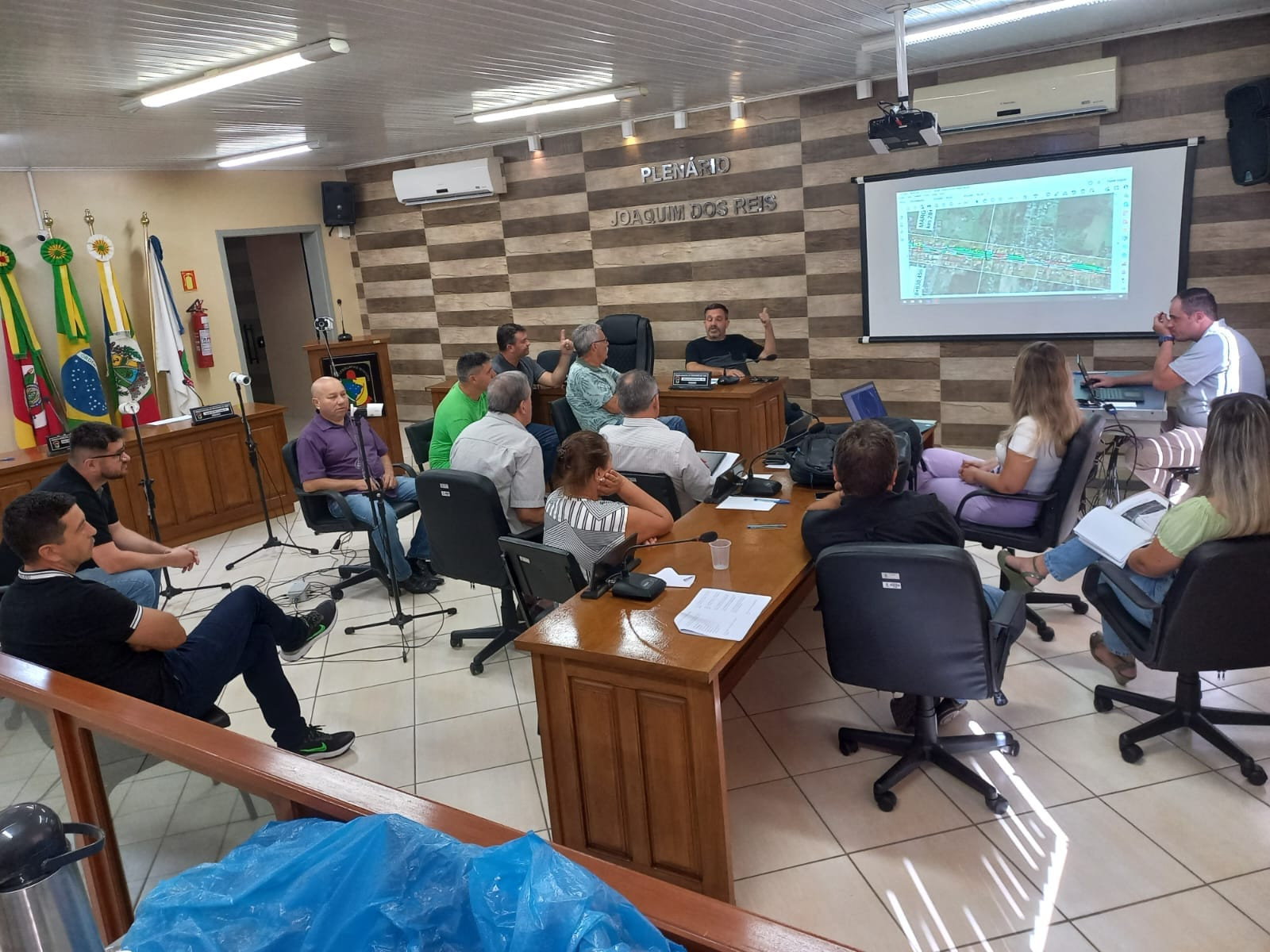 A reunião teve início com a apresentação das aprovações pela Secretaria de Logística e Transporte (SELT), do Governo do Estado do Rio Grande do Sul, as quais foram apresentadas pelo Gestor Sócio Ambiental da Concessionária Sacyr, César Cruvinel.