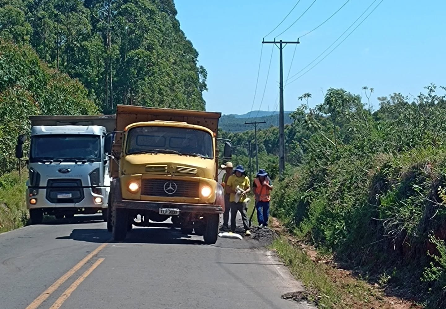 O Departamento Autônomo de Estradas de Rodagem (DAER) realiza uma operação de tapa-buracos ao longo da VRS-835, em Paverama.