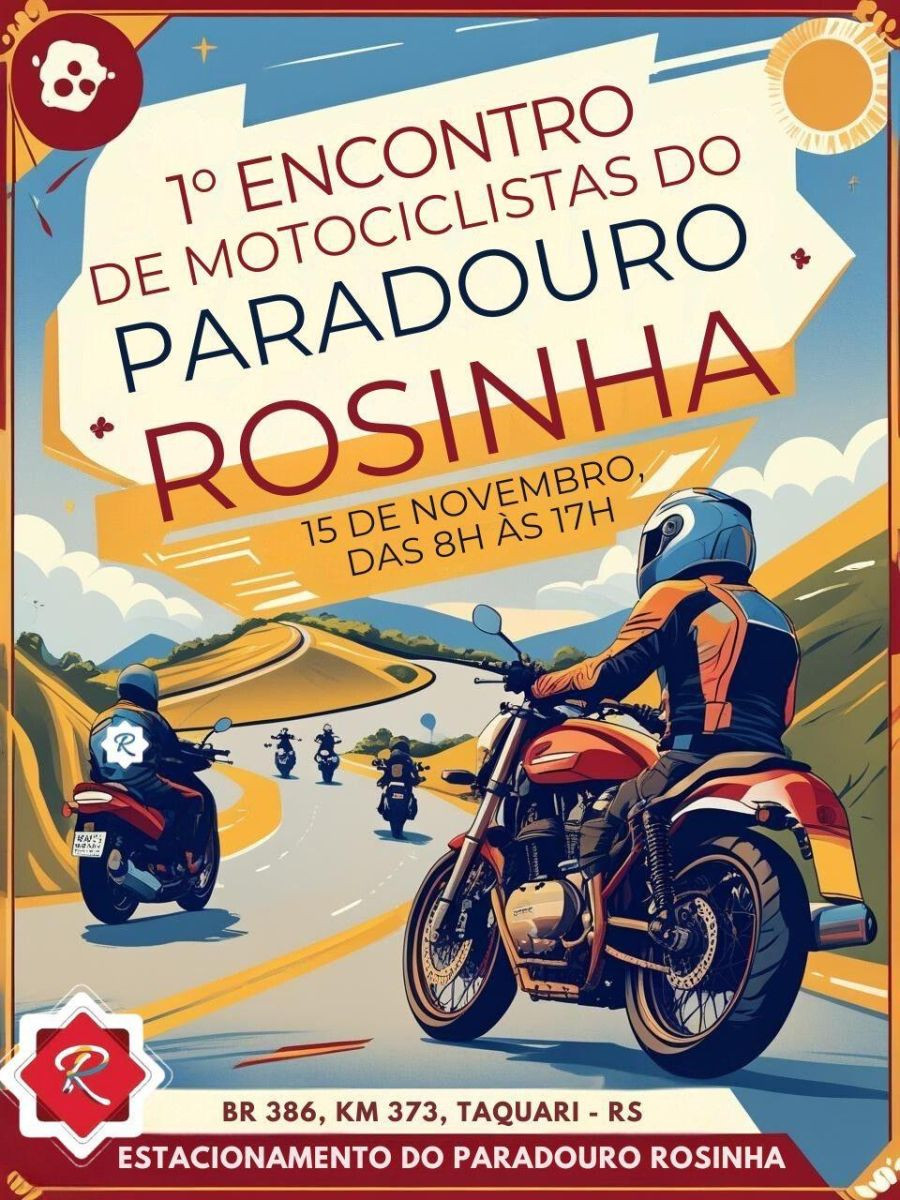 O Paradouro Rosinha realiza neste sábado, dia 15 de novembro, o 1º Encontro de Motociclistas do Paradouro Rosinha. O evento promete reunir amantes das duas rodas em um dia de confraternização, música e diversão para todas as idades.