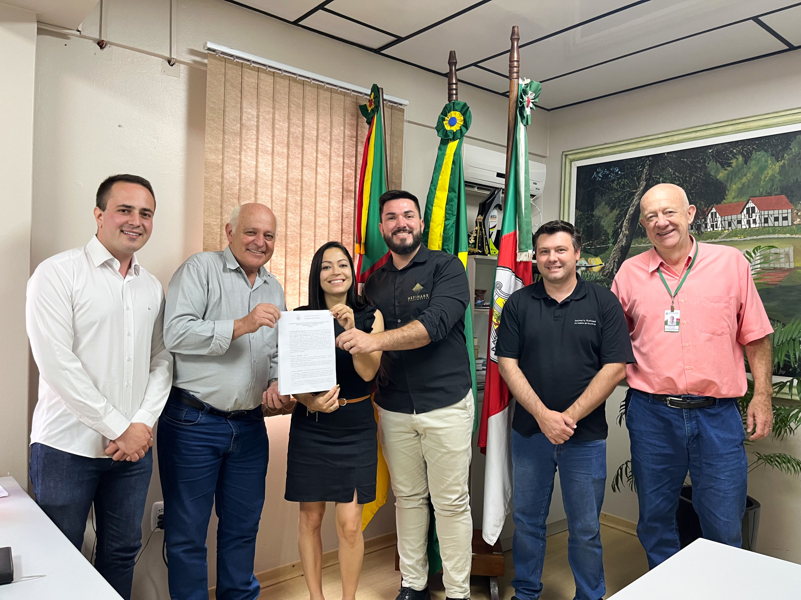 Na tarde desta sexta-feira, dia 05 de janeiro de 2024, a Administração Municipal de Teutônia firmou uma parceria com a empresa teutoniense Refinare Acabamentos, através de assinatura de contrato, que prevê a cessão de um pavilhão de 1.515,54 m², de posse da Prefeitura de Teutônia, para utilização da empresa.