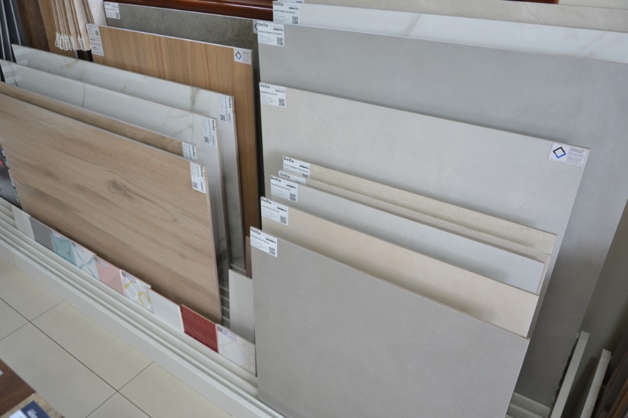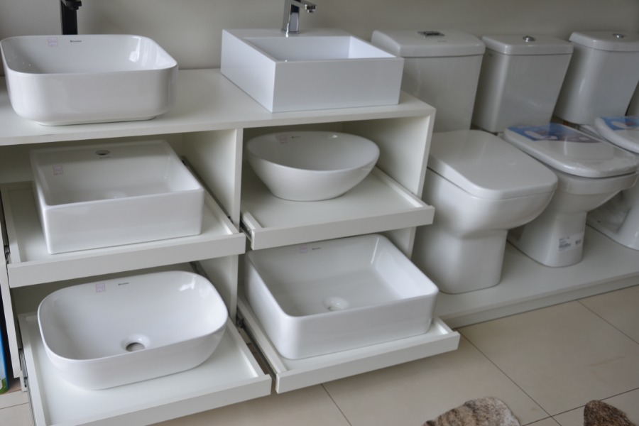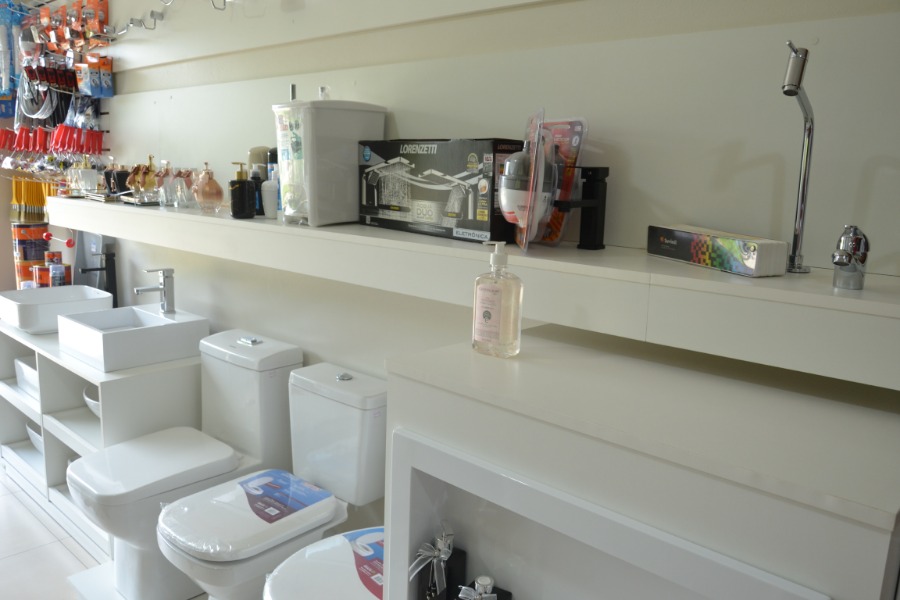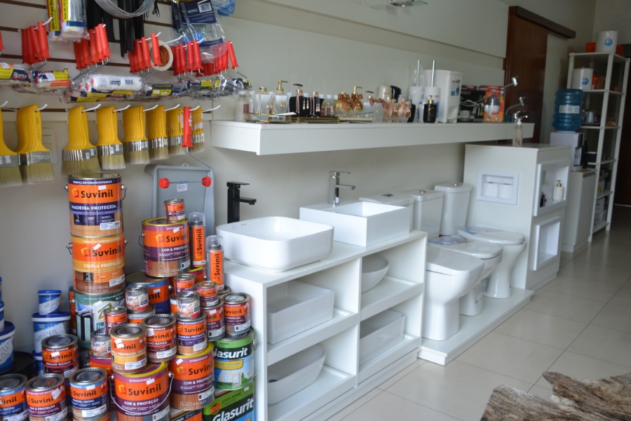 Tem também diversas opções em pisos cerâmicos, porcelanatos, pisos vinílicos, argamassas, rejuntes, tapetes de couro, louças sanitárias (vasos, monoblocos, cubas e nichos) metais, acessórios, tintas, telas, tubulação e conexões de água fria, água quente e esgoto.