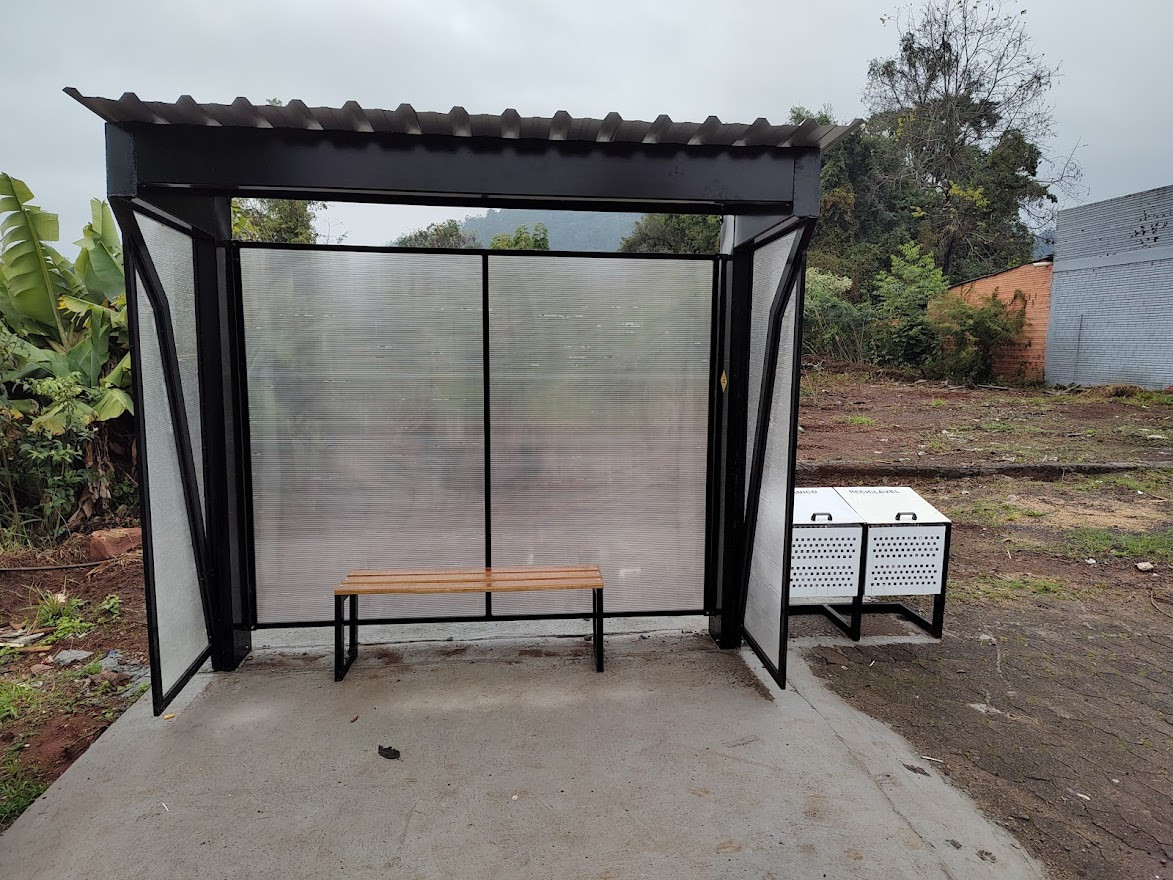 A estrutura conta com fechamento em chapa de acrílico a fim de proteger nos dias chuvosos, banco, espaço para cadeirante, conjunto de lixeiras e local específico para informar o itinerário, representando um investimento total de R$83.200,00. Nos próximos meses as instalações receberão adesivagem padronizada.