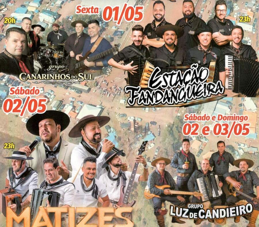 - Sexta-feira (01/05) 20h: Grupo Canarinhos do Sul | 23h: Estação Fandangueira