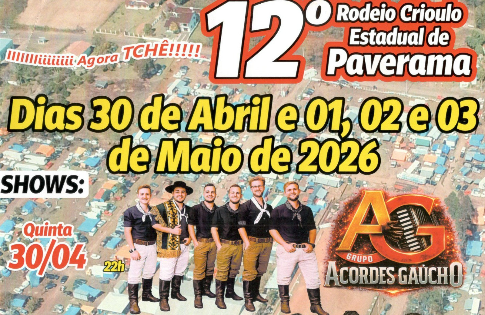 - Quinta-feira (30/04) | 22h: Grupo Acordes Gaúcho