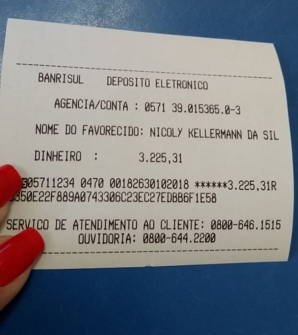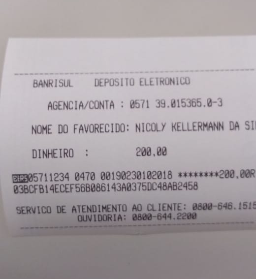Conta: 0571/3901536503 em nome de Nicoly Kellermann da Silva.