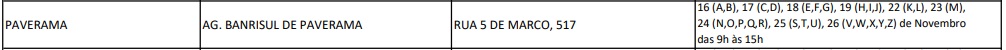 Em Paverama a entrega será realizada no Banrisul, na Rua 5 de Março, n° 517.