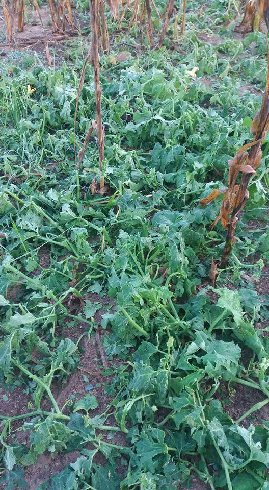 Plantações foram atingidas pelo granizo e rajadas de vento. Reprodução Facebook.