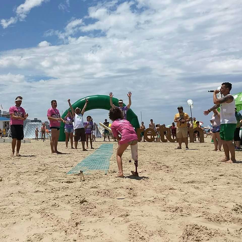 Crianças do Instituto do Câncer Infantil treinam famosos em campeonato de taco na beira da praia