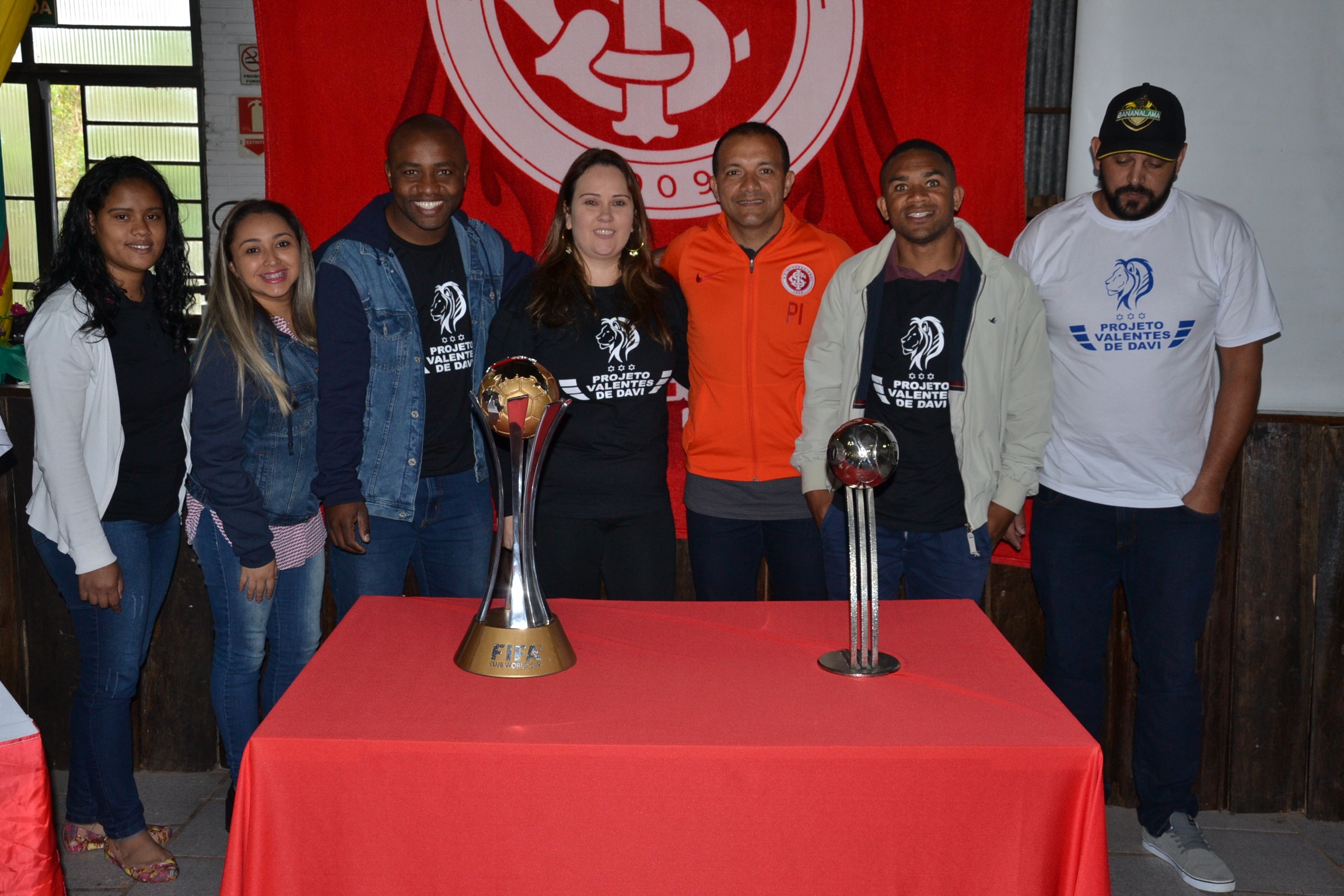 A Taça do Internacional de Campeão Mundial de Clubes, além da Taça de 2º Melhor jogador da final além do próprio Iarley, estavam a disposição para fotos.