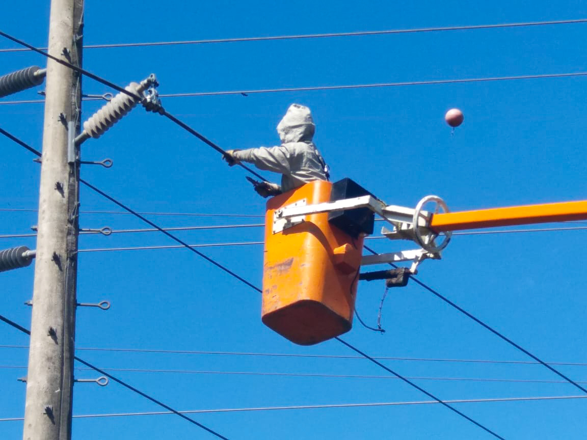 “O drone tem dez quilômetros de alcance, mas temos que ter uma visibilidade dele por causa da frequência. Além disso, dias de chuva podem ter descargas atmosféricas, que têm parâmetros para contínua avaliação, se podemos continuar ou não. Para isso, respeitamos a faixa de servidão, que é dez metros para cada lado do cabo”, explica Barcellos.
