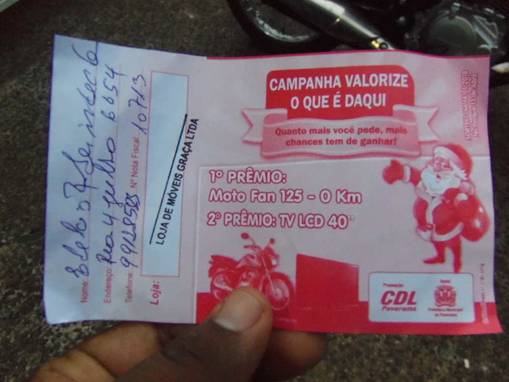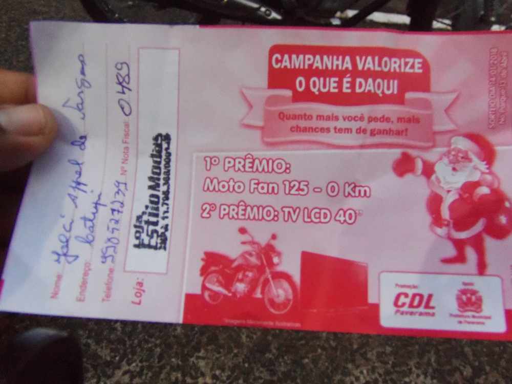 O prêmio maior, a Moto Fan 0km, gerou muita expectativa nos presentes. O Prefeito em exercício, Vice-prefeito Elemar foi o responsável por retirar a cautela. De 50 mil cupons depositados, o ganhador foi Edelcio Leindecker, morador do Centro, que retirou sua cautela após comprar nas Lojas Graça.