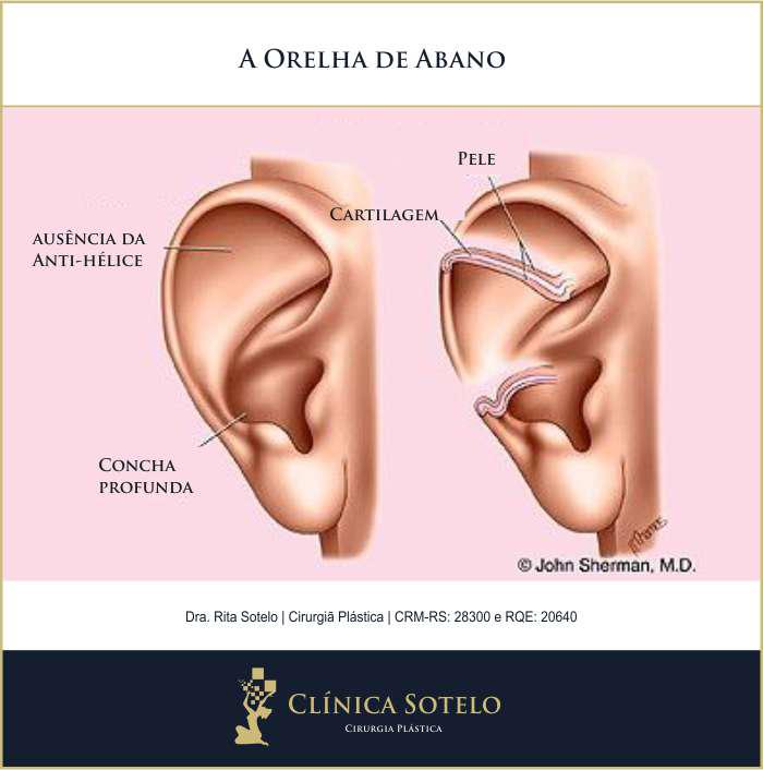 "Orelha de abano" é um termo usado vulgarmente para descrever orelhas muito abertas e afastadas do crânio. Elas são o tipo mais comum a serem corrigidos em uma cirurgia de otoplastia. Em vista frontal, as orelhas de abano podem despontar amplamente, e por isso muitas crianças com essa condição são chamadas pejorativamente de "Dumbo", o elefantinho das histórias infantis.
