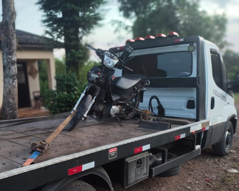 A motocicleta foi localizada na frente da residência onde o grupo se encontrava. No local, os policiais também apreenderam carenagens, ferramentas e diversos objetos que podem estar relacionados a práticas ilícitas.