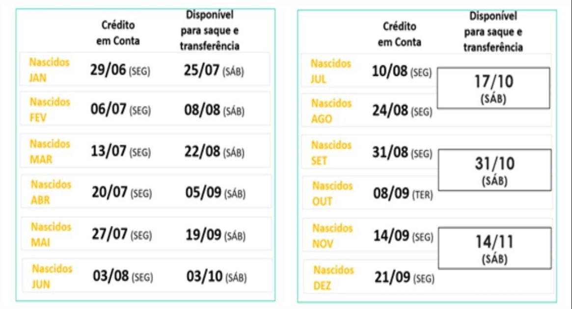 A Caixa divulgou um calendário com as datas para depósito na poupança digital e para saque em espécie e transferência para outros bancos. Ele leva em consideração a data de nascimento do trabalhador.