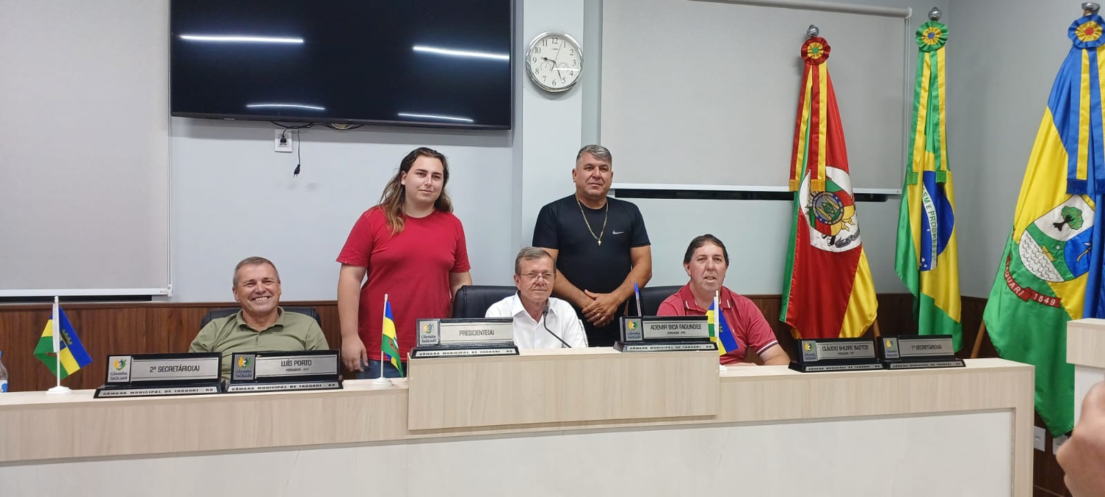 A Mesa Diretora eleita para o próximo ano será composta integralmente por vereadores do PDT. O vereador Ademir Fagundes foi reeleito presidente do Legislativo taquariense por maioria e comandará a Casa pelo terceiro ano consecutivo, nos anos de 2024, 2025 e 2026.