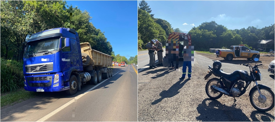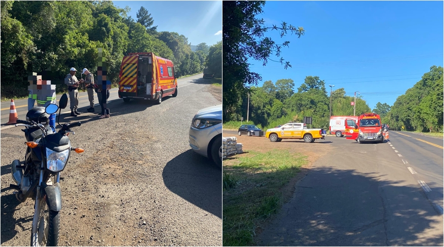 Colisão entre carro e moto deixa três feridos na ERS-128, em Teutônia