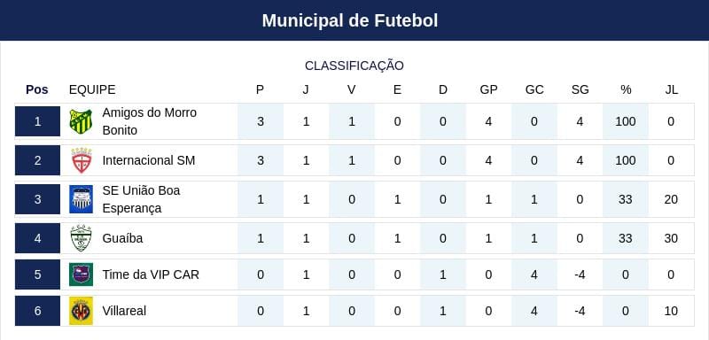 Com os resultados, Internacional SM e Amigos do Morro Bonito largam na frente com três pontos e saldo positivo de quatro gols.