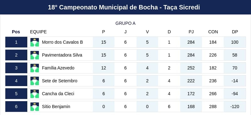 Confira a classificação do Municipal de Bocha de Paverama após a sexta rodada