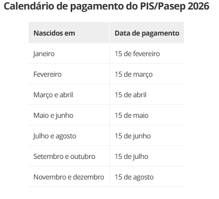 O calendário de pagamentos do PIS/Pasep 2026 terá início em 15 de fevereiro, seguindo o mês de nascimento do trabalhador (PIS) ou o número final de inscrição (Pasep).
