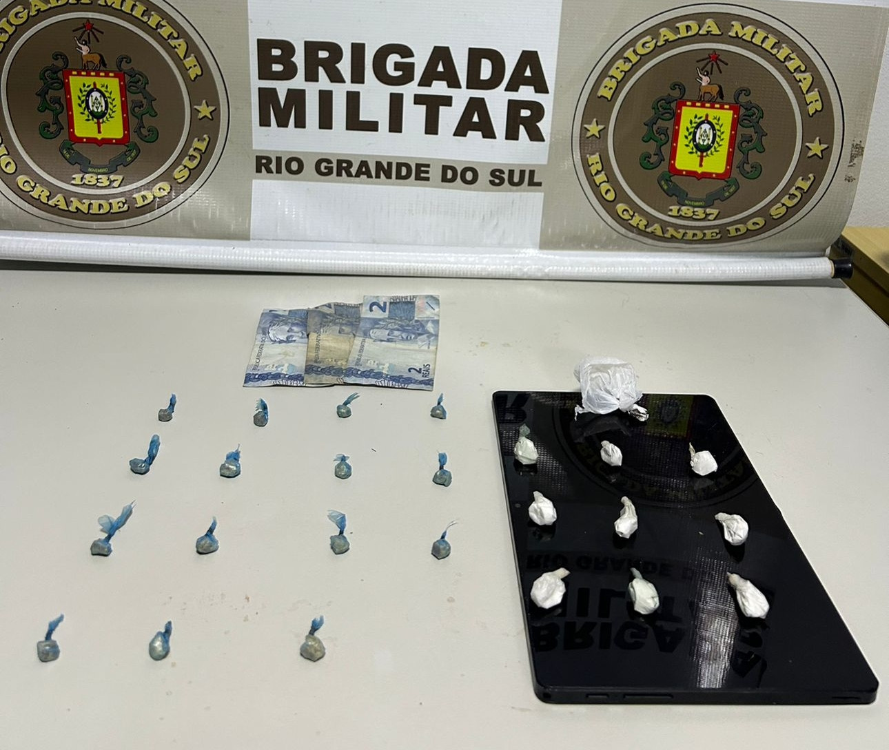 Conforme a ocorrência, os suspeitos, de 26 e 37 anos, foram abordados e, com eles, os policiais localizaram porções de crack e cocaína, além de dinheiro e um tablet.
