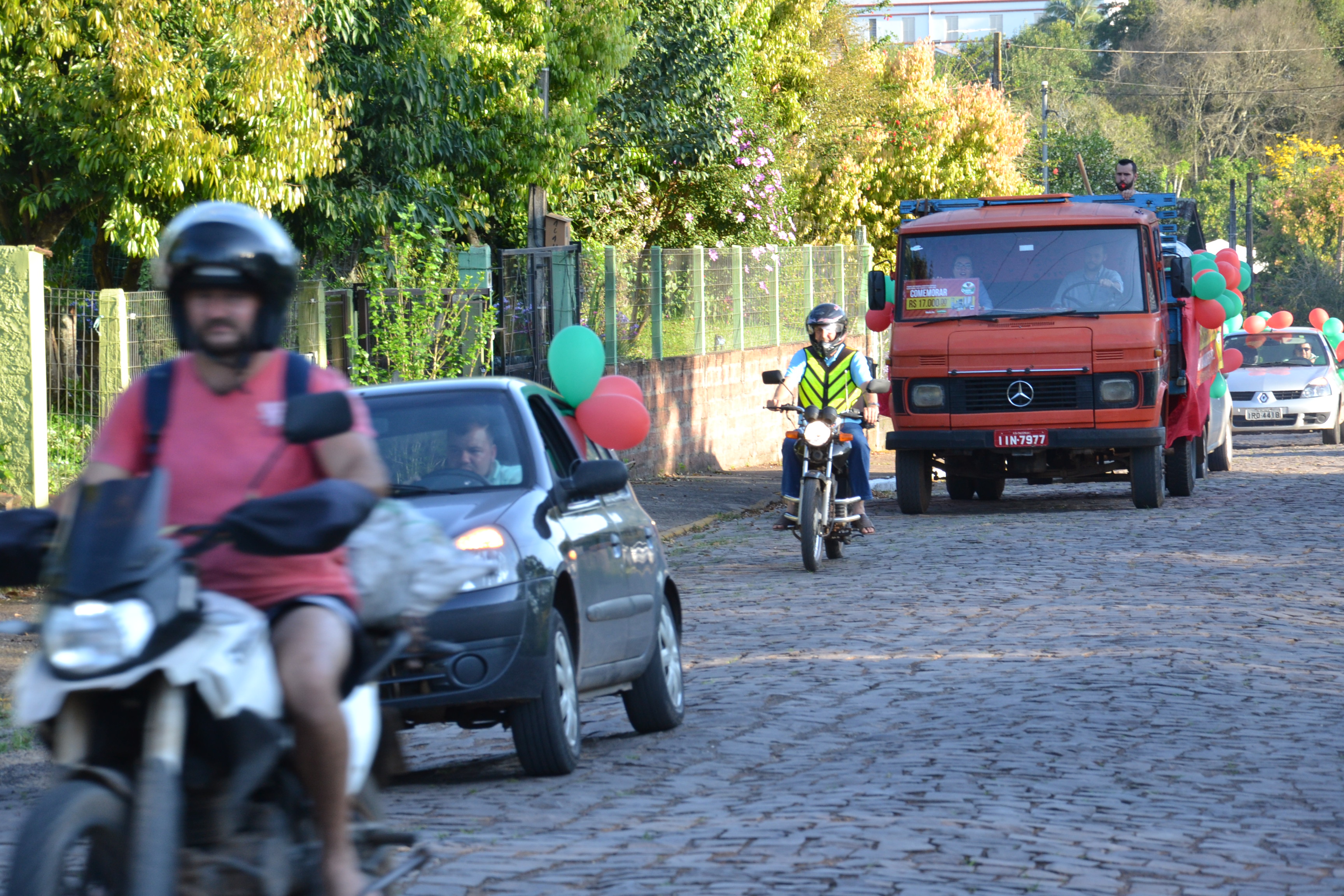 Carreata chegando na casa da cliente Erna Weber. Créditos: Jêison Lauri da Rosa/Clic Paverama/Clic do Vale