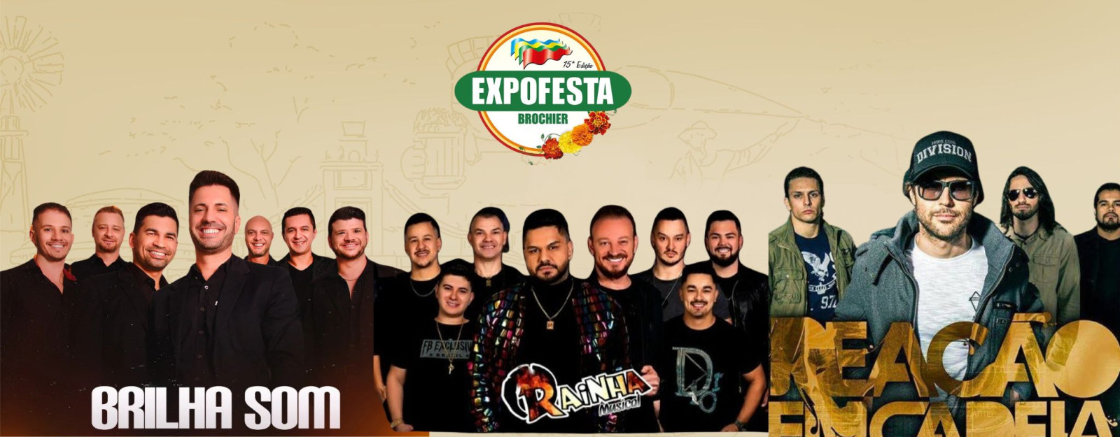 Reação em Cadeia, Rainha Musical e Brilha Som estão entre as atrações da Expofesta Brochier 2026, que terá 18 shows