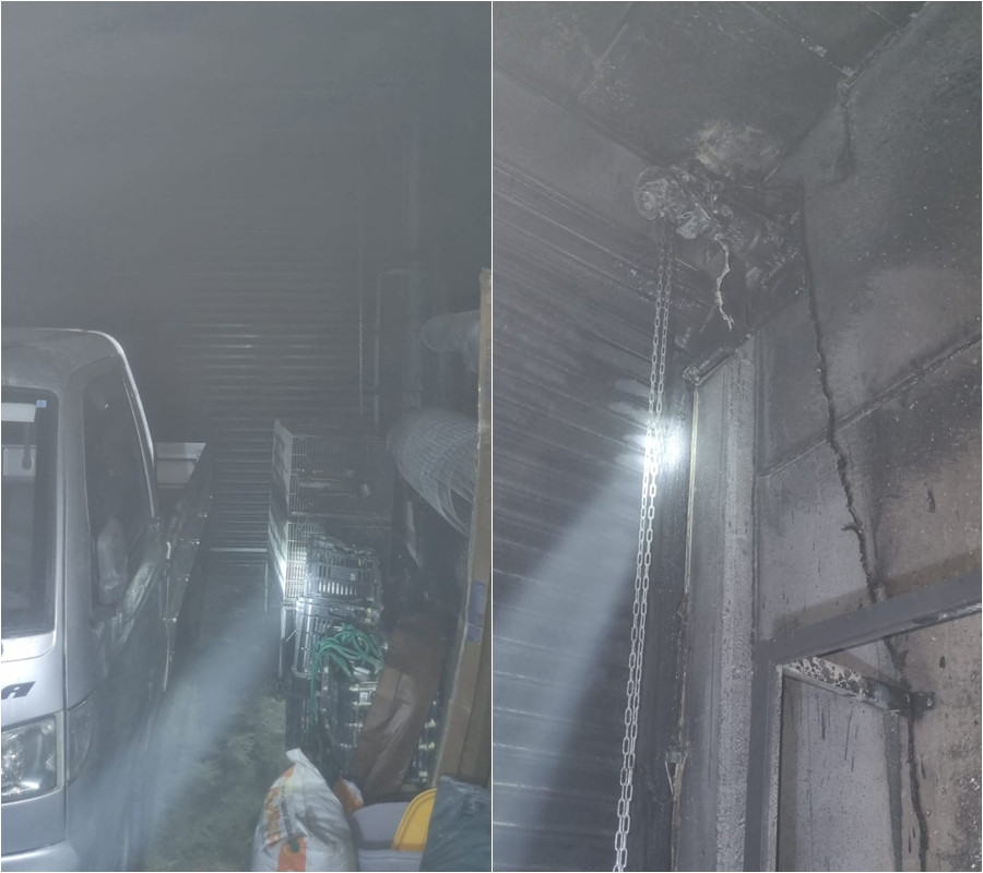 De acordo com as informações apuradas, o incêndio danificou o motor do portão da garagem, além de lonas, caixas de papelão e rolos de fios elétricos que estavam armazenados no local.