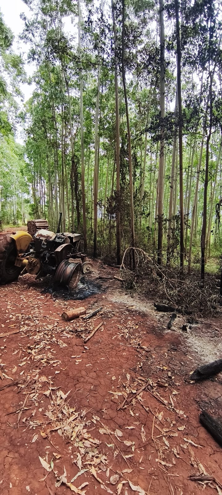 Conforme informações repassadas pela corporação, o chamado foi recebido às 12h10. Ao chegarem ao local, os bombeiros constataram que uma pilha de lenha, estimada em aproximadamente 60 metros cúbicos, e um trator já haviam sido consumidos pelas chamas.