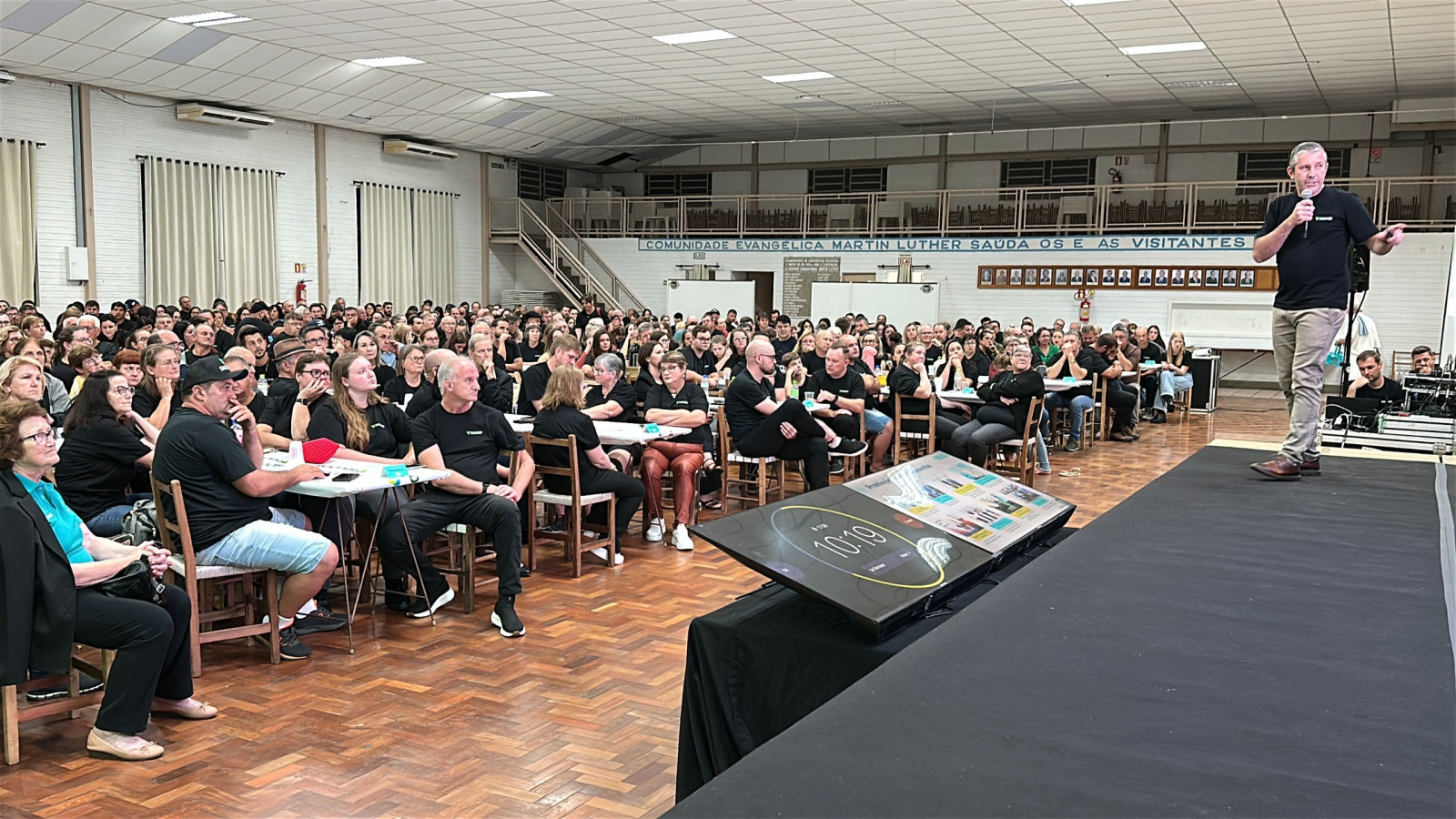 A pré-assembleia do Sicoob São Miguel reuniu aproximadamente 600 cooperados das agências de Canabarro e Teutônia na noite desta terça-feira, no Centro Evangélico Martin Luther, no bairro Languiru, em Teutônia.