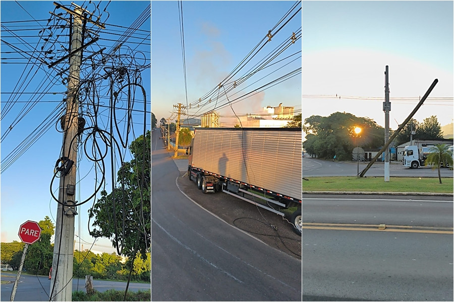 No início da manhã desta sexta-feira, dia 6, a ERS-128 (Via Láctea) foi parcialmente bloqueada após a queda de grande quantidade de fios de telefonia e internet sobre a pista, no trevo de acesso à Lactalis, no Bairro Languiru, em Teutônia.