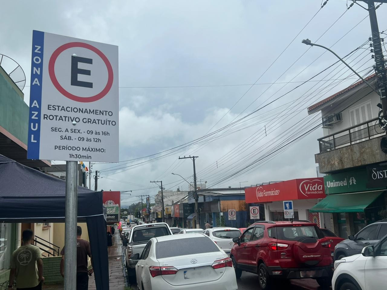 O funcionamento da Área Azul ocorre de segunda a sexta-feira, das 9h às 16h, e aos sábados, das 9h ao meio-dia. Estão incluídos trechos da Rua Sete de Setembro e da Rua Osvaldo Aranha, entre as ruas Albertino Saraiva e Albino Pinto, além da quadra coberta da Rua Vereador Praia. Conforme a Prefeitura, a implantação do estacionamento rotativo não interfere na realização da Feira do Produtor, realizada aos sábados.
